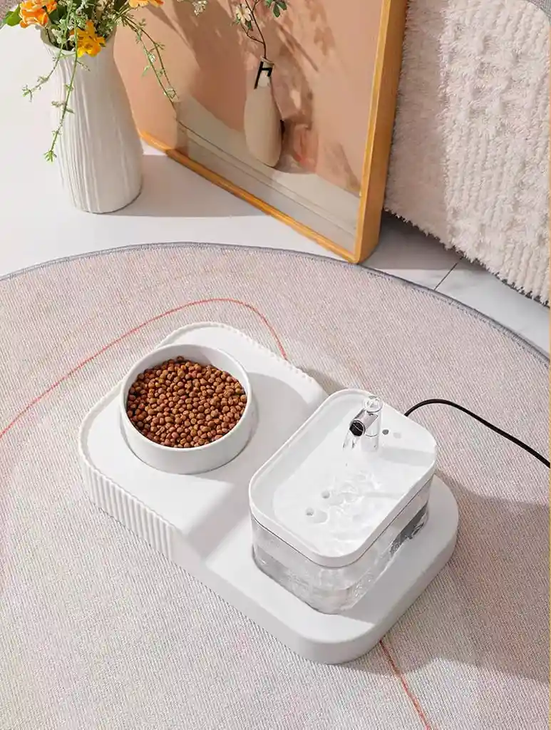 MEDIDAS 37 * 20 CM, LA FUENTE CAPACIDAD DE 3 LITROS, ELECTRICO, EL COMEDERO ES DE CERAMICA