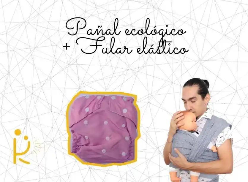 Pañal ecológico, incluye compresa absorbente. El fular elástico está hecho en algodón y está certificado internacionalmente