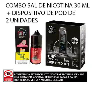 Fume DRP Pod Kit con 2 cartuchos y 30ML de sal de nicotina. Diseñado para quienes saben lo que quieren.” Advertencia ⚠ este producto contiene nicotina una sustancia adictiva, es perjudicial para la salud, prohibida su venta a menores de edad, antes de usar leer indicaciones y contraindicaciones del producto