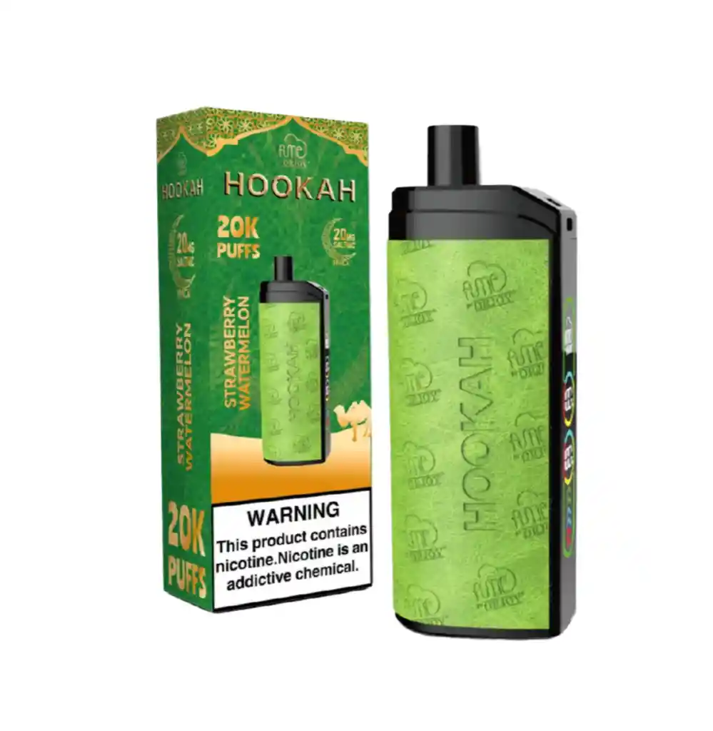 SABOR FRESA SANDIA. El Fume Hookah (Narguila) Vape ofrece 20,000 caladas con 2% de nicotina, brindando una experiencia suave y duradera al estilo hookah. cuenta con medidor de esencia y batería, diseño en cuero. Con una capacidad de 19mL de e-líquido y una resistencia de malla única, garantiza un vapor consistente, DEMASIADO HUMO, y lleno de sabor en cada calada. Equipado con una batería recargable de 650 mAh, este dispositivo está diseñado para un uso prolongado y una recarga sencilla, combinando comodidad y alto rendimiento para una sesión de vapeo inigualable.