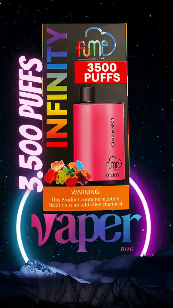Fume Infinity Gummy Bears 3500 Pffs Este producto puede ser utilizado para productos que contienen nicotina o tabaco. El tabaco y la nicotina son nocivos para la salud. Ley 30 de 1986. Verificar condiciones de uso, indicaciones y contraindicaciones en la etiqueta. Prohibida la venta a menores de edad
