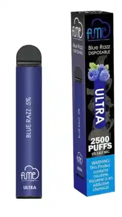 2500 PUFF El Fume ULTRA es un dispositivo de sistema de cápsulas de vape desechable precargado que es compacto, de tamaño de bolsillo y más fácil de llevar. El Fume ULTRA Desechable te durará más con 2500 inhalaciones y funciona con una batería incorporada de 1000 mAh y una enorme cápsula precargada de 8 ml con un sabroso e-líquido. 5% de Nicotina Prohibida la venta a menores de edad. Producto nocivo para la salud que contiene nicotina, sustancia altamente adictiva. Antes de consumir consulte las indicaciones y contraindicaciones de uso