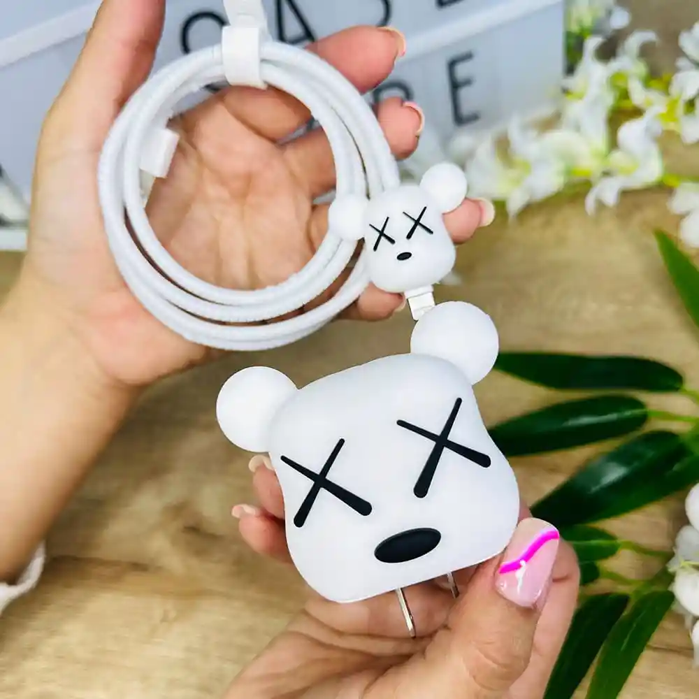 Funda Case Para Cargador Iphone 20w Kit Diseño Oso Xx Estuche Protector Forro