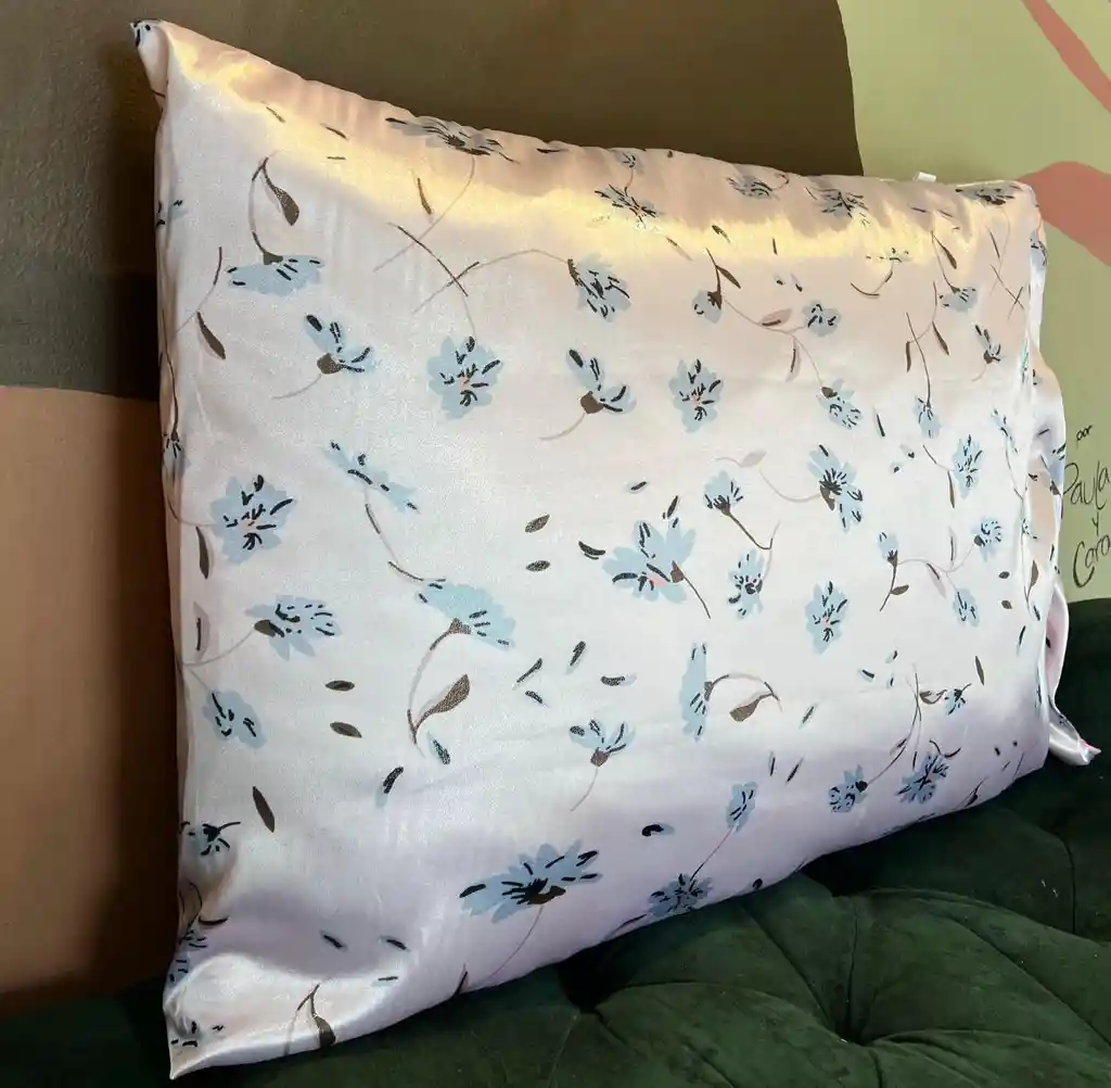 Funda de seda satinada con detalles escarchados marca Palm On Tiene cremallera, cierre al costado. Porque usar tela en satin ? • El satin es una tela recomendada por profesionales para el uso en el cabello y cuidado de la piel : Porque permite que al dormir nuestro cabello no se enrede, no se deshidrate y sobretodo para que en el rozamiento constante con la tela “” hayan rompimientos de la fibra capilar. • Cuidado facial: es hipo alergénica y no absorbe los productos faciales que hayas aplicado previamente en tu rostro. Diseñado y confeccionado por nuestra marca aqui en Bogotá