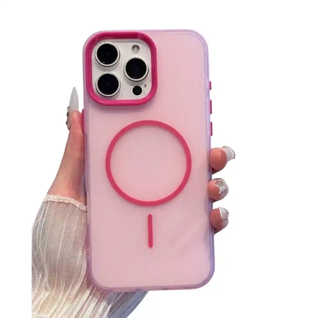 📱💜 Funda Magnética Transparente con Detalles Rosados – Compatible con iPhone 15 Pro Max / 14 Pro Max Protege tu iPhone 14 Pro Max/15 pro Max con estilo gracias a esta funda de diseño moderno y funcional. Su acabado translúcido permite lucir el color original del dispositivo, mientras que los bordes en tonos rosados y morados le dan un toque femenino y sofisticado. Características destacadas: 🧲 Compatibilidad MagSafe: Incluye anillo magnético para carga inalámbrica rápida y accesorios compatibles 💎 Diseño elegante: Acabado translúcido con detalles en rosa y morado que realzan el estilo del teléfono 📐 Ajuste preciso: Diseñada especialmente para iPhone 14 Pro Max/15 Pro Max, con recortes exactos para cámara, botones y puertos 🛡️ Protección confiable: Material resistente a golpes, rayones y caídas, sin sacrificar la estética Ideal para quienes buscan una funda que combine protección, funcionalidad y un diseño delicado pero moderno. ¡Convierte tu teléfono en un accesorio de moda!