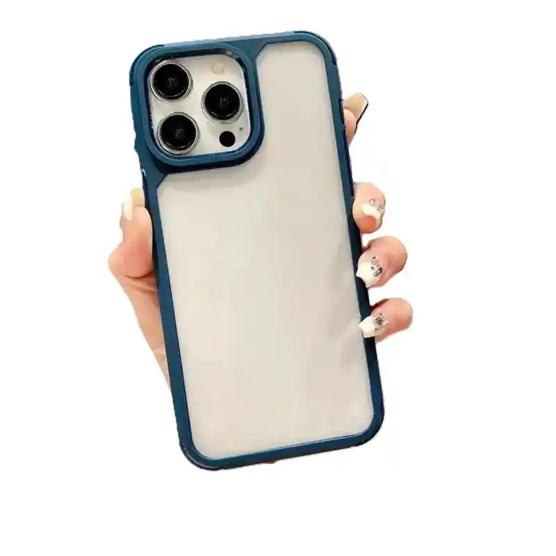 Funda protectora para iPhone 13 con diseño transparente y borde azul. Diseñada para combinar estilo y protección, cuenta con un marco suave y resistente que absorbe impactos, mientras que su cubierta trasera rígida proporciona una defensa sólida contra caídas, rayones y desgaste diario. Su ajuste preciso asegura acceso fácil a todos los botones y puertos, ofreciendo funcionalidad completa sin comprometer el diseño original del dispositivo. Ideal para quienes buscan un equilibrio entre elegancia y durabilidad.