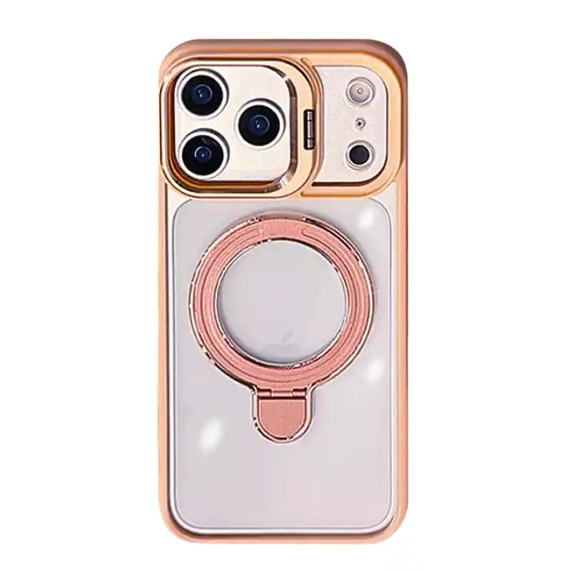 Funda Magnética iPhone 17, 17 Air, 17 Pro, 17 Pro Max Con MagSafe Soporte Anillo Protector de Cámara Protege tu iPhone con esta funda resistente compatible con iPhone 17, diseñada con anillo magnético MagSafe y soporte plegable integrado. Permite cargar el teléfono de forma inalámbrica y utilizar accesorios MagSafe sin retirar la funda. Cuenta con un protector deslizante para la cámara que evita rayones y protege los lentes cuando no se usan. Además, el anillo metálico funciona como soporte para ver videos o realizar videollamadas con manos libres. Su construcción combina materiales resistentes que ayudan a absorber impactos y proteger el dispositivo frente a golpes y caídas accidentales. Características principales Compatibilidad: iPhone 17, 17 Air, 17 Pro, 17 Pro Max Tecnología: MagSafe magnético Soporte: anillo metálico plegable Protección de cámara: cubierta deslizante Material: TPU flexible + marco rígido Función soporte: vertical y horizontal Carga inalámbrica: compatible Diseño: resistente a golpes y rayones Ventajas Permite cargar con MagSafe sin quitar la funda Protección extra para las cámaras Soporte integrado para ver videos cómodamente Mayor agarre al sostener el teléfono Diseño moderno y resistente para uso diario Ideal para Uso diario Protección del teléfono Ver videos o series con soporte Usuarios que utilizan cargadores o accesorios MagSafe