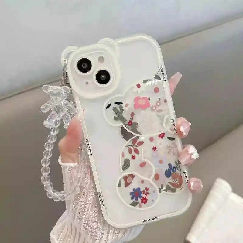 Funda con correa (strap) diseño oso flores Compatible con iPhone 12 Pro Max Material: Silicona rígida Incluye correa o strap Los diseños de la correa pueden variar Importante: Debido a la diferencia de pantallas y efecto de la luz, el color real del artículo puede ser ligeramente diferente al color mostrado en las imágenes. celular
