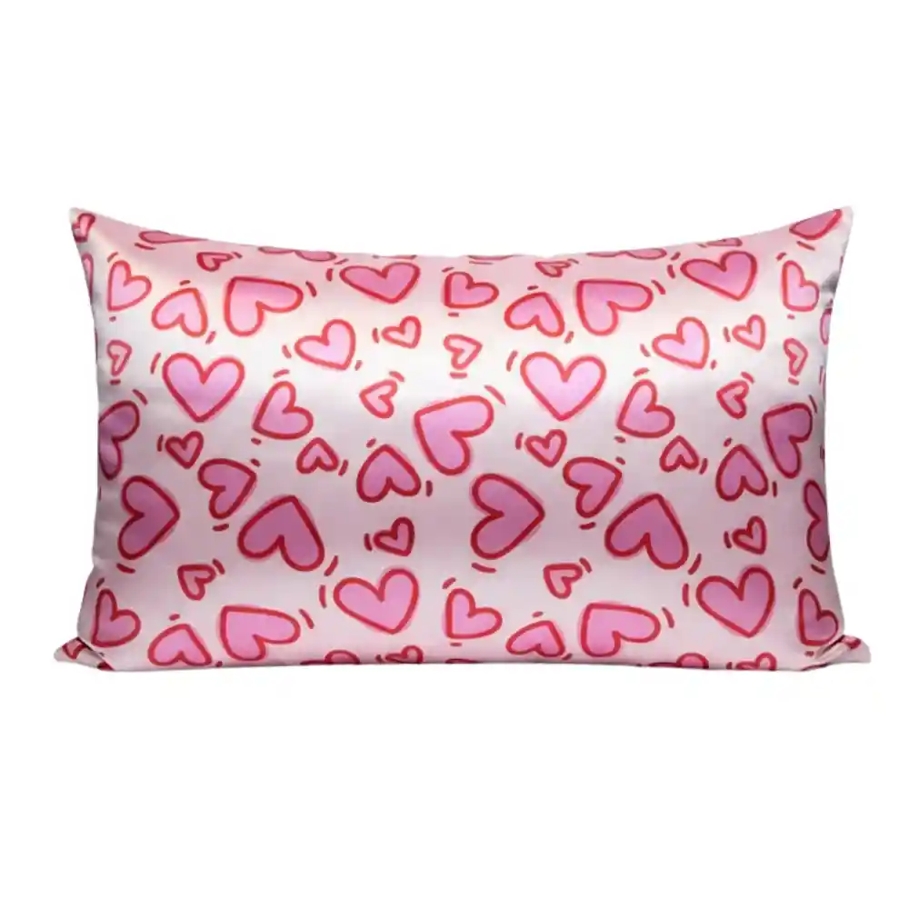 Funda para Almohada en Satín con Estampado 🌸 Incluye: 1 funda de almohada Diseño: Corazones rosa Material: Satín de alta calidad Medida: Estándar Beneficios: - Cuidado del cabello: El satín reduce la fricción entre tu cabello y la almohada, lo que ayuda a prevenir la rotura y la formación de nudos, manteniendo tu cabello más suave y saludable. - Cuidado de la piel: El satín es suave y delicado con la piel, lo que puede ayudar a reducir la formación de arrugas y la irritación cutánea durante el sueño. - Mejora del descanso: La suavidad del satín proporciona una superficie cómoda para descansar, lo que puede mejorar la calidad de tu sueño. ¡Disfruta de un sueño reparador con estilo, mientras cuidas tu piel y tu cabello!