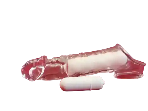 Funda para Pene con Extensión y Bala Vibradora – Más Largo, Más Intenso, Más Placer Explora una experiencia completamente diferente con esta poderosa funda para pene con extensión y bala vibradora incorporada en el glande, diseñada para llevar tus encuentros íntimos al límite del placer. Esta funda no solo aumenta la longitud y el grosor del pene, sino que también incorpora una bala vibradora estratégicamente ubicada en la punta, ofreciendo una estimulación directa e intensa durante la penetración.
