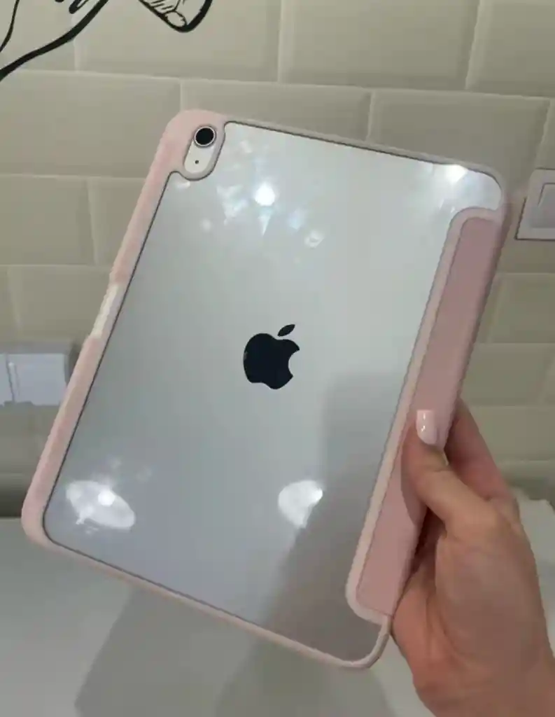 FUNDA PROCTECTORA CON PORTALAPICES, CUBIERTA DURA TRASERA TRANSPARENTE ACRILICA TRIPLE PARA IPAD 10 GENERACION Y 11 GENERACION A16 COLOR ROSA
