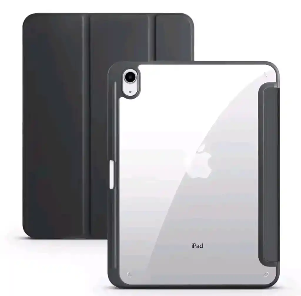 FUNDA PROCTECTORA CON PORTALAPICES, CUBIERTA DURA TRASERA TRANSPARENTE ACRILICA TRIPLE PARA IPAD 10 GENERACION Y 11 GENERACION A16 COLOR negro