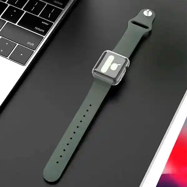 Protector de pantalla de alta resistencia perfecto para Apple Watch, suave al tacto de la piel lo cual no perderá sensibilidad la pantalla de su reloj inteligente, además protegerá el cristal de la pantalla de rayones, arañazos como de abolladuras lo cual lo hará más seguro. Este protector de pantalla su material es flexible, fácil de instalar y lo más importante no crea burbujas. - Anti arañazos, anti-huella digital y alta durabilidad que facilita el toque del reloj. - Alta transparencia que permite buena visualización y sensibilidad de pantalla. - Fácil instalación. - Material TPU de alta calidad en tono completamente transparente - Protege la pantalla y los bordes del Apple Watch. ¡ADVERTENCIA! NO ES COMPATIBLE CON APPLE WATCH SERIE 10. ESTE PRODUCTO ESTA DISEÑADO PARA EL APPLE WATCH ORIGINAL NO ES COMPATIBLE CON REPLICAS O SMARTWATCH DE OTRAS REFERENCIAS. Importante: Debido a la diferencia de pantallas y efecto de la luz, el color real del artículo puede ser ligeramente diferente al color mostrado en las imágenes.