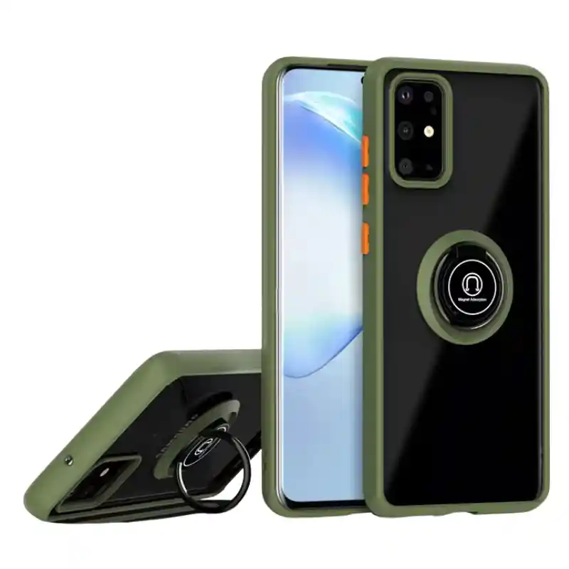 Funda Samsung A51 Ring Case Matte Magnética Antigolpes Protege tu Samsung A51 con estilo y máxima funcionalidad gracias a la funda Ring Case magnética. Diseñada con un elegante acabado matte semitransparente, ofrece una textura suave al tacto y una excelente resistencia frente a golpes, caídas y rayones. Su anillo metálico giratorio de 360° funciona como soporte para ver videos o videollamadas y es compatible con soportes magnéticos de carro. Los bordes de colores con botones contrastantes le dan un toque moderno sin sacrificar la protección total del dispositivo. Características destacadas: Compatible con: Samsung Galaxy A51 Diseño moderno con acabado matte translúcido Ring metálico giratorio de 360° y base imantada Compatible con soportes magnéticos de vehículo Protección completa contra caídas y arañazos Botones de colores con respuesta táctil precisa Borde reforzado con diferentes tonos Material: TPU flexible y policarbonato rígido