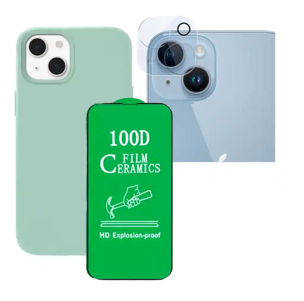 Silicone Case + Protector De Cámara + Cerámico Silicone Case Protección contra impacto, elegante y lujoso. Diseño de seguridad que mejora el estilo del dispositivo. Bordes resistentes que brindan mejor resistencia contra impactos accidentales. Esquina curva para mejorar el agarre. No se pega en los bolsillos. Cada orificio viene muy bien detallado y ajustado a los botones o cámaras del celular. Los espacios de los botones se ajustan perfectamente al móvil sin afectar su manipulación.