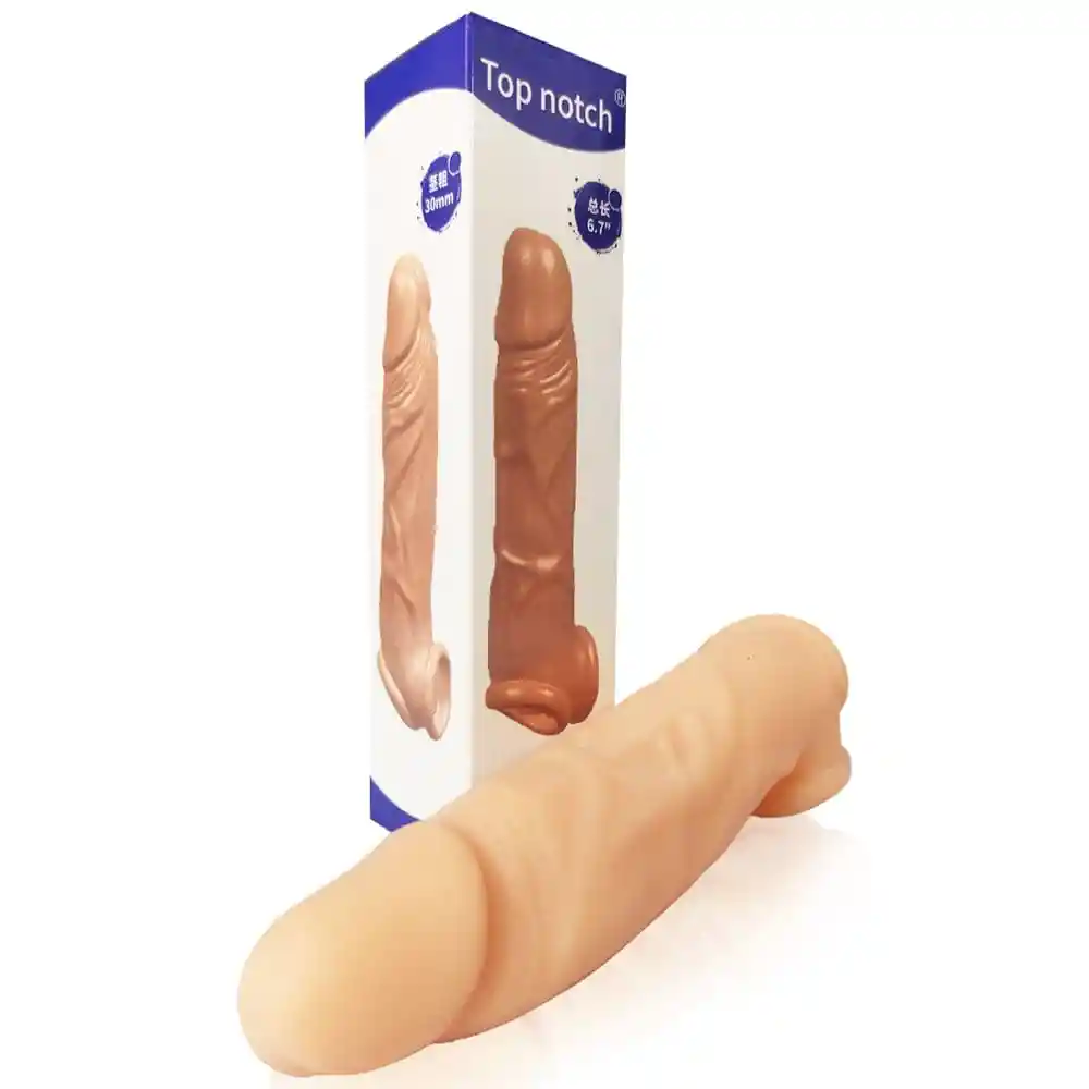 Funda Extensora de Pene Reutilizable tipo Condón Funciona como Retardante para la Eyaculación Harás sentir a tu pareja como si tuvieses un pene más grande. CARACTERISTICAS: LARGO: 16 CM DIAMETRO: 4 CM REALISTA COLORES: PIEL