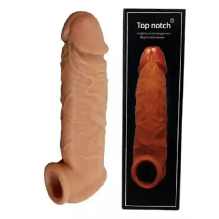 FUNDA ULTRA REALISTA PARA EL PENE Explora nuevas sensaciones con esta funda, su uso proporcionará más placer y más grosor instantáneamente, al ser entera te ayudará a mantener la erección prolongando así la diversión. Su textura permitirá estimular de forma agradable ofreciendo sensaciones adicionales a la penetración, estimulara el clítoris, también sirve como preservativo o condón, Sin duda un excelente juguete para parejas, un potenciador de erección y del encuentro sexual. Material silicona médica ultra suave y flexible, adicional su textura con protuberancias permitirá un estímulo más placentero. La mejor del mercado comparando características, precio y calidad. totalmente flexible y suave para evitar molestias incómodas.. CARACTERISTICAS DESTACADAS Silicona médica suave y flexible (Amigable con el cuerpo) Ultra realista Medidas: 14cm Impermeable Texturizada para mayor estimulación funciona cómo Condon funciona como Preservativo