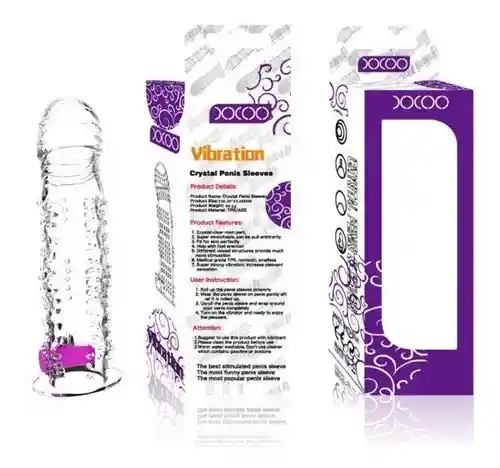 Esta funda suave, está hecha con textura que te ayudará a conseguir mayor placer ya que estimulará las paredes vaginales y anales Se estira para amoldarse al grosor del pene, incluye balita vibratoria para estimulación clitorial Material: TPR + ABS Carga: 2*LR1130 Batería Funciones: Vibración continua Tamaño: 14,5 cm x 3,5 cm x 3 cm