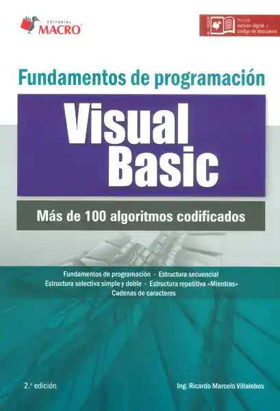 La presente publicación le permitirá al usuario comprender el análisis, diseño y codificación de algoritmos, dominando las estructuras del control de flujo if, switch, select case, while y for. A lo largo del libro se desarrollan temas relacionados a los fundamentos de programación, diagramas de flujo y pseudocódigo, codificación en Visual Basic, estructuras, manejos de cadenas, subalgoritmos, entre otros. Este libro está dirigido a estudiantes, desarrolladores, programadores y principiantes.