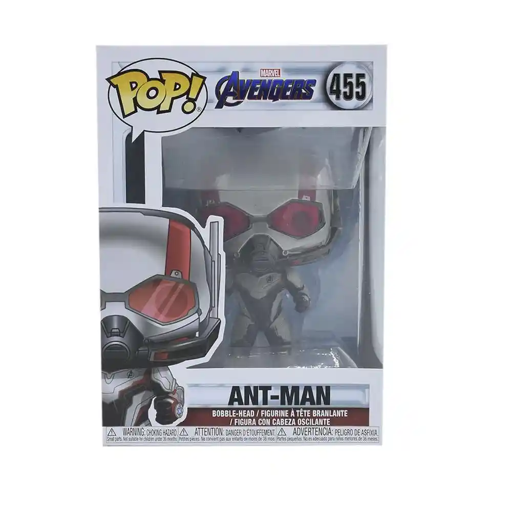 CARACTERÍSTICAS:POP Marvel: Ant-Man (455)- Colección: Avengers Endgame- Modelo: 36666Empaque original:- Empaque: 16 x 12 x 9 cms (Aproximadamente)DESCRIPCIÓN:Únete al universo Funko y colecciona todos los personajes de la película Avengers: Endgame.Funko diseña, fabrica y distribuye productos altamente coleccionables en múltiples categorías, incluyendo figuras de vinilo, juguetes de acción, peluche, ropa, artículos para el hogar y accesorios.Los Funko Pop! son figuras de vinilo, un material muy resistente que posee un acabado de cabeza bobble (de burbuja), es decir, es un muñeco con cabeza grande y cuerpo pequeño, dándole así un aspecto supertierno (hasta el personaje de ficción más terrorífico puede ser una monada con el acabado Pop!).