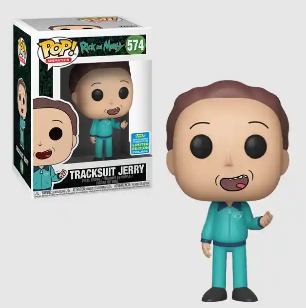 Funko Pop! Tracksuit Jerry Para fans de Rick and Morty, lleva lo mejor de la marca Funko Pop y disfruta tu figura de Tracksuit Jerry. Exclusiva San Diego Comic Con 2019. Regalo ideal para un verdadero fan! Colecciónalos todos! - Tamaño: 10 cms aproximadamente - Material: Vinilo - Color: Multicolor - Original 100% - 889698403856 #AdoptaUnFunko