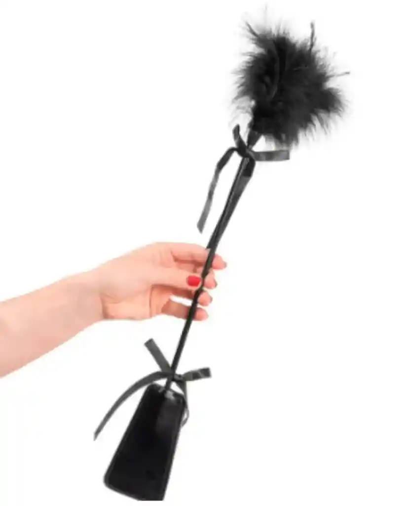 Fusta de cuero sintético en una punta para mantener a tu amante tranquil@ y bajo control, y plumero erótico en el otro extremo para algo más que unas simples caricias con sus suaves y delicadas plumas que cosquillean cualquier parte del cuerpo.