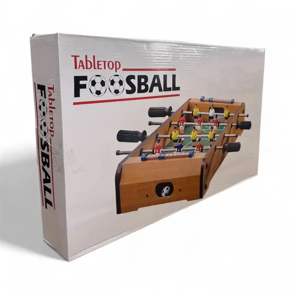 FUTBOLÍN DE MADERA, JUEGO DE MESA 51CM DE LARGO. Se juega sobre una mesa, sobre la cual ejes transversales con palancas con forma de jugador son girados por los jugadores para golpear una pelota. Perfecto para cualquier interior, gracias a su tamaño lo puedes llevar a cualquier parte, excelente para diversión entre familiares, amigos y colegas. Elaborado con materiales de alta calidad. CARACTERÍSTICAS: - Material: Marco en MDF. - Colores de equipos: Amarillo Vs Rojo + 2 Bolas. - Dimensión total: 51cm x 51cm x 10cm (Largo, Ancho, Alto) - Manual de instrucciones y herramientas para armado. *FÁCIL DE ARMAR. DISTRIBUIDOR AUTORIZADO Envíos a nivel nacional. ONE ZONE SPORT NIT: 901.451.888-6