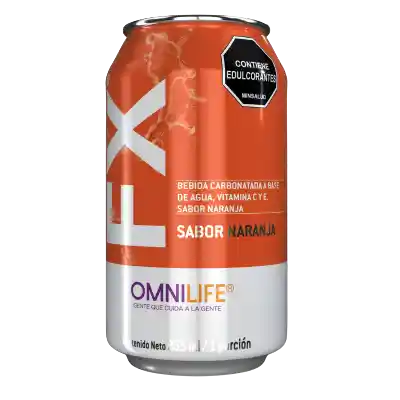 Bebida carbonatada con sabor a naranja, si calorías, endulzado con estevia, adicionado con vitaminas antioxidantes C y E