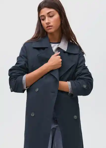 Cierre de Botones en la Parte Delantera Cinturón Ajustable Cuello de Solapa Diseño Cruzado Diseño Recto Dos Bolsillos Laterales Manga Larga Tejido de Algodón Trabillas en Los Puños - 17084069_56.
