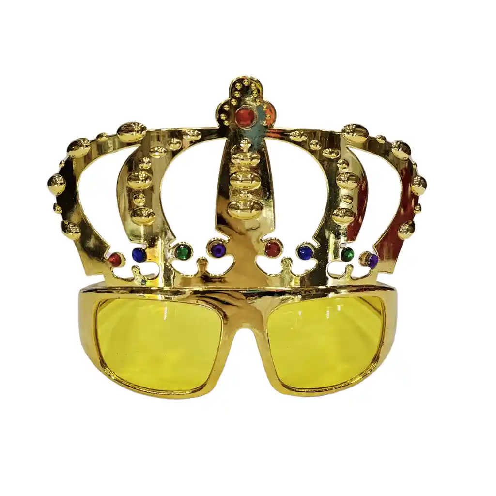 Gafas doradas en forma de corona de rey con decoracion en piedras de colores