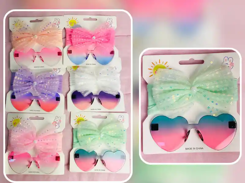 Hermosas gafas de pasta en forma de corazón con balaca elástica. Tu princesa se sentirá hermosa en días soleados y podrá combinar los diferentes colores con hermosos atuendos. ¡Colecciónalas todas! NOTA: Especifica tu color preferido en las observaciones del pedido