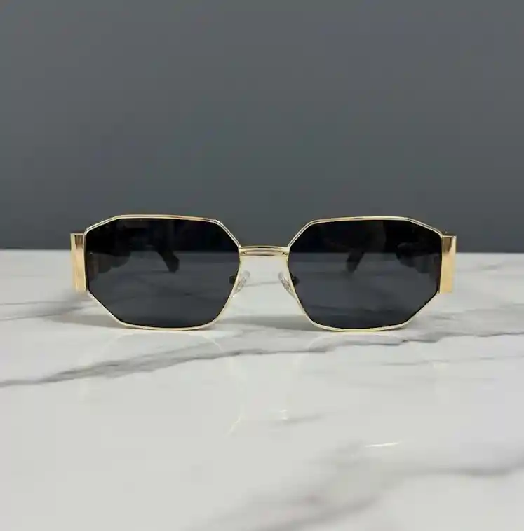 GAFAS / LENTES DE SOL NEGRAS HEXAGONALES – PLACA MEDUSA