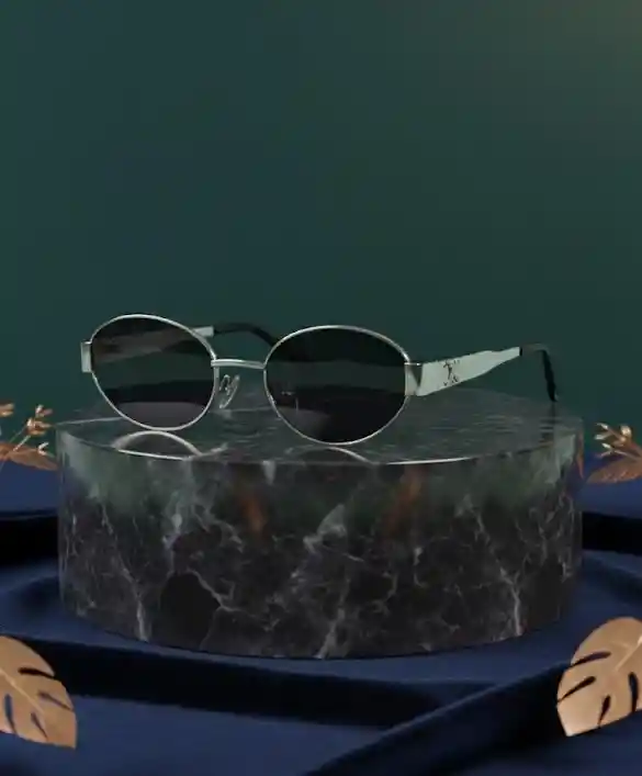 GAFAS / LENTES DE SOL OVALADAS – LENTE NEGRO, MARCO PLATEADO