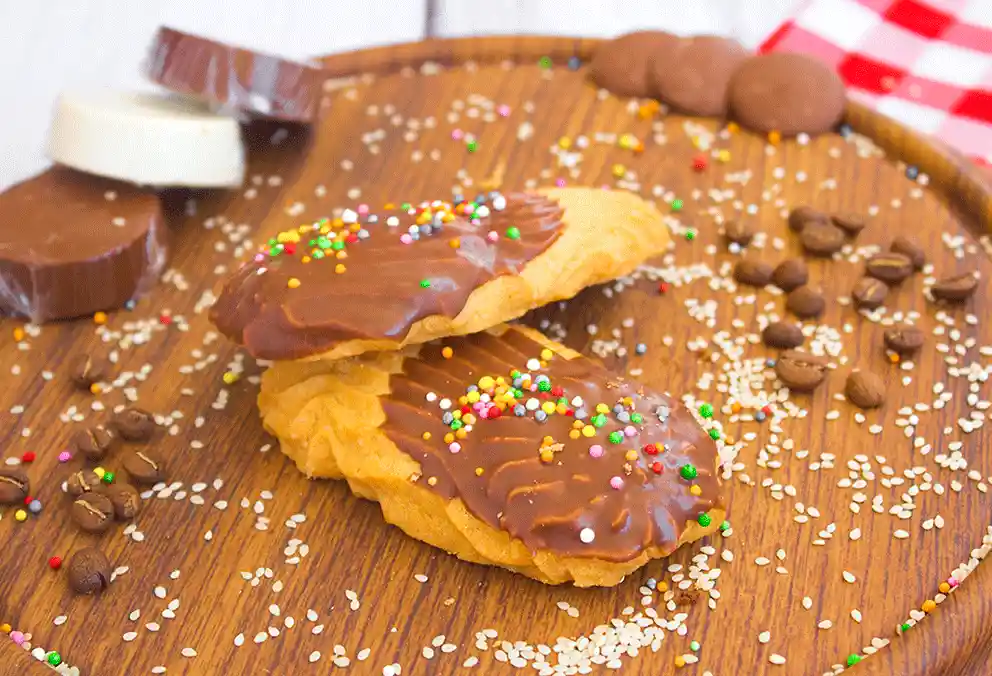 Galleta de batido dulce con un toque sabor de chocolate y divertidas pepitas de colores. Pack x 5 unidades