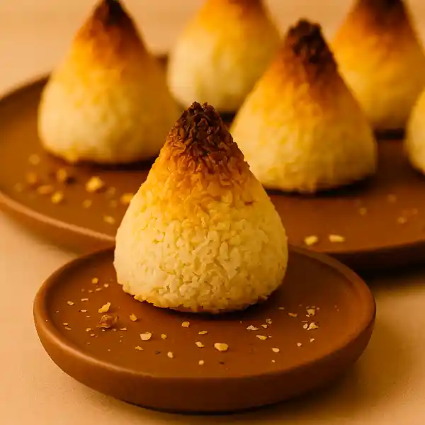 Nuestros coquitos son pequeños bocados dorados y crujientes por fuera, con una textura suave y húmeda en su interior gracias al coco rallado