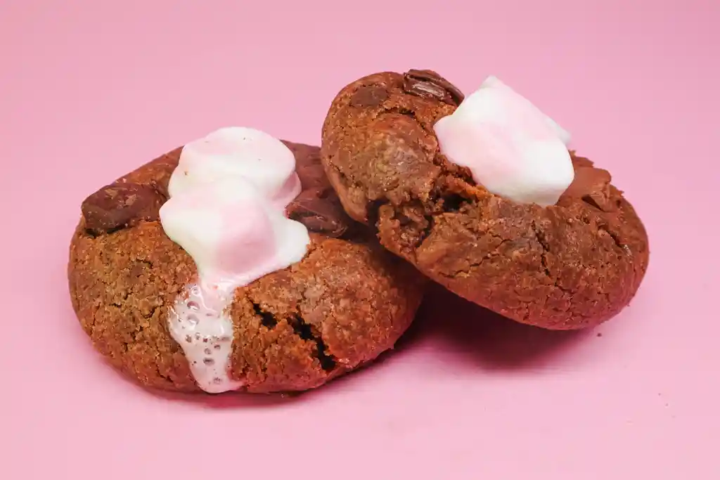 Una galleta con la personalidad de un brownie y una explosión de chocolate con topping de masmelo.