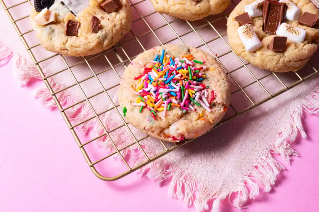 Galleta rellena de cheesecake con sprinkles