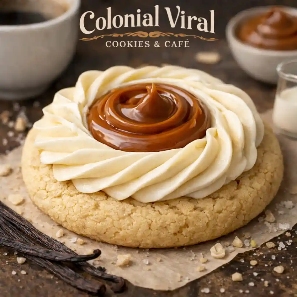 Galleta artesanal de vainilla con frosting de Vainilla y Besito de Arequipe.