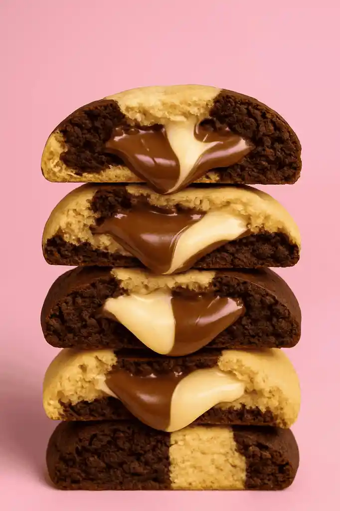 Galleta artesanal de mitad vainilla y mitad chocolate rellena de nucita.