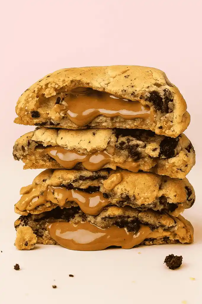 Galleta artesanal de vainilla con trozos de oreo y relleno de crema de avellanas