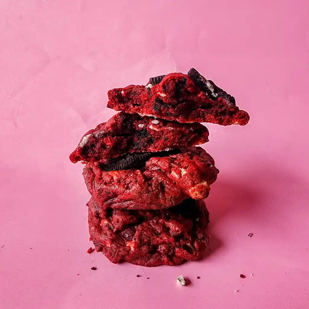 Clásico red velvet con un toque crujiente. Masa de galleta red velvet con trozos de galleta Oreo, para un sabor único y adictivo.