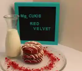❤️RED VELVET: galleta con cocoa rellena de frosting de queso crema, decorada con cobertura de chocolate blanca y chips de chocolate blanco