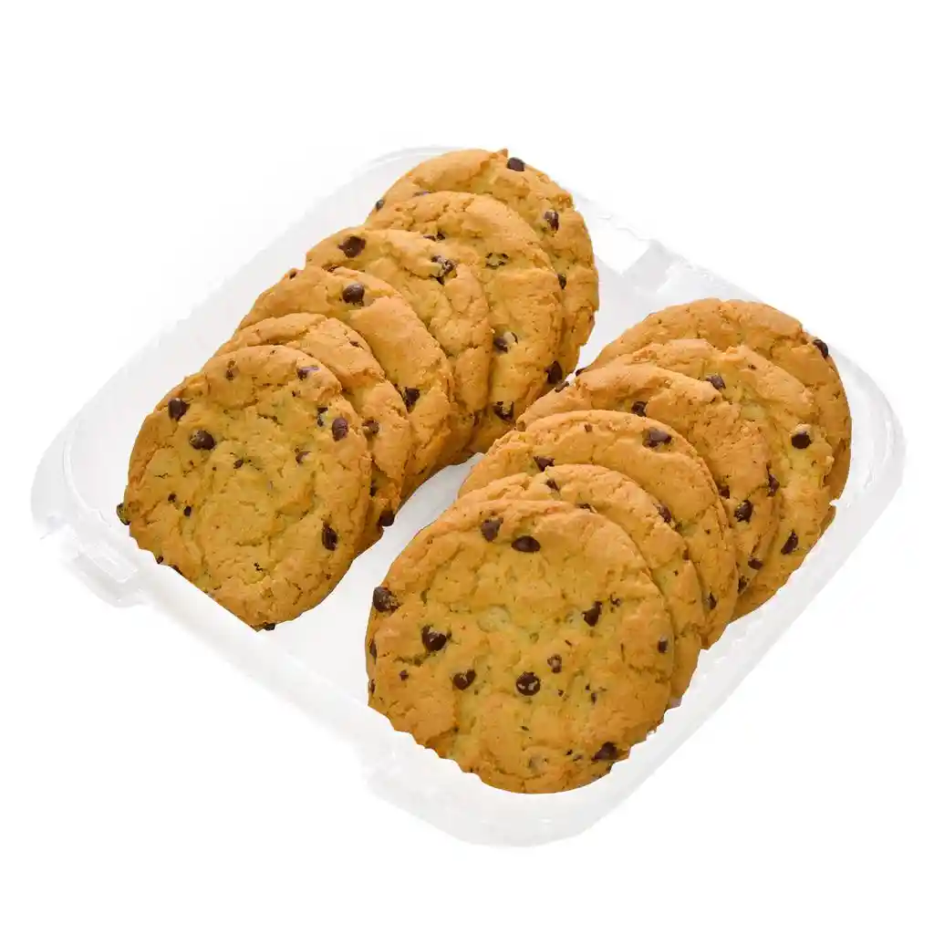 Galletas de Chispas de Chocolate Recién Preparadas 12 Unidades | Peso Neto: 400 g / 14.1 oz | El producto debe consumirse una vez abierto y antes de la fecha de vencimiento | Mantener a temperatura ambiente | Contiene alérgenos como trigo, soya, leche y huevos.