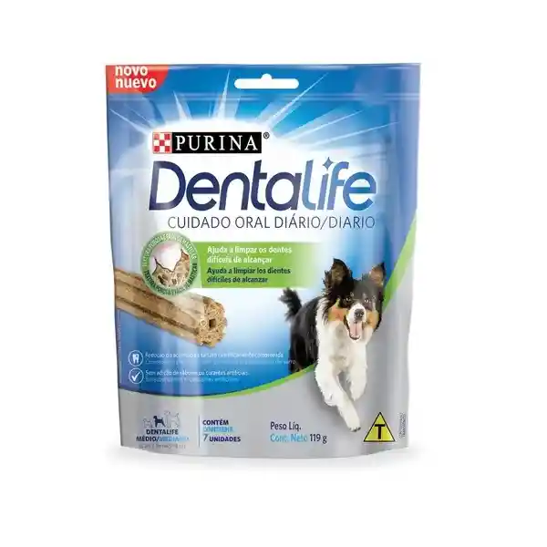 Purina® Dentalife® es la solución ideal para el cuidado oral diario de tu perro. Es práctico, eficiente y diseñado especialmente para que tu mascota lo disfrute.