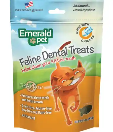 ¿Sabías que la salud dental de tu gato es esencial para su bienestar general? Descubre cómo cuidar los dientes de tu felino con los premios dentales de atún de EMERALD PET. Los gatos tienen necesidades dentales específicas, y los premios dentales de atún de EMERALD PET están especialmente formulados para satisfacerlas. Estos premios no solo promueven una salud dental óptima, sino que también satisfacen el instinto natural de tu gato de masticar, mientras disfruta del delicioso sabor del POLLO. Además, la frescura del aliento y la reducción de la acumulación de placa son evidencia de su calidad superior.
