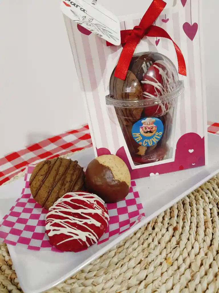 GALLETAS MINIS, EN TARRITOS, SABORES: RED VELVET- CHOCOLATE VAINILLA Y CHOCOLATE