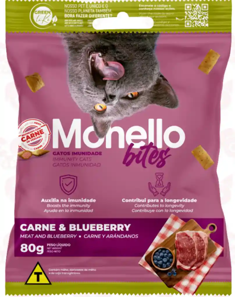 Las galletas Monello de carne y arándanos para gatos sirven como un snack o recompensa, no como un alimento completo. Estas galletas están diseñadas para proporcionar un sabor atractivo y complementar la dieta de tu gato, ofreciendo beneficios como ácidos grasos omega 3 y 6 para la piel y el pelo, prebióticos para la salud intestinal y aminoácidos para la formación muscular.