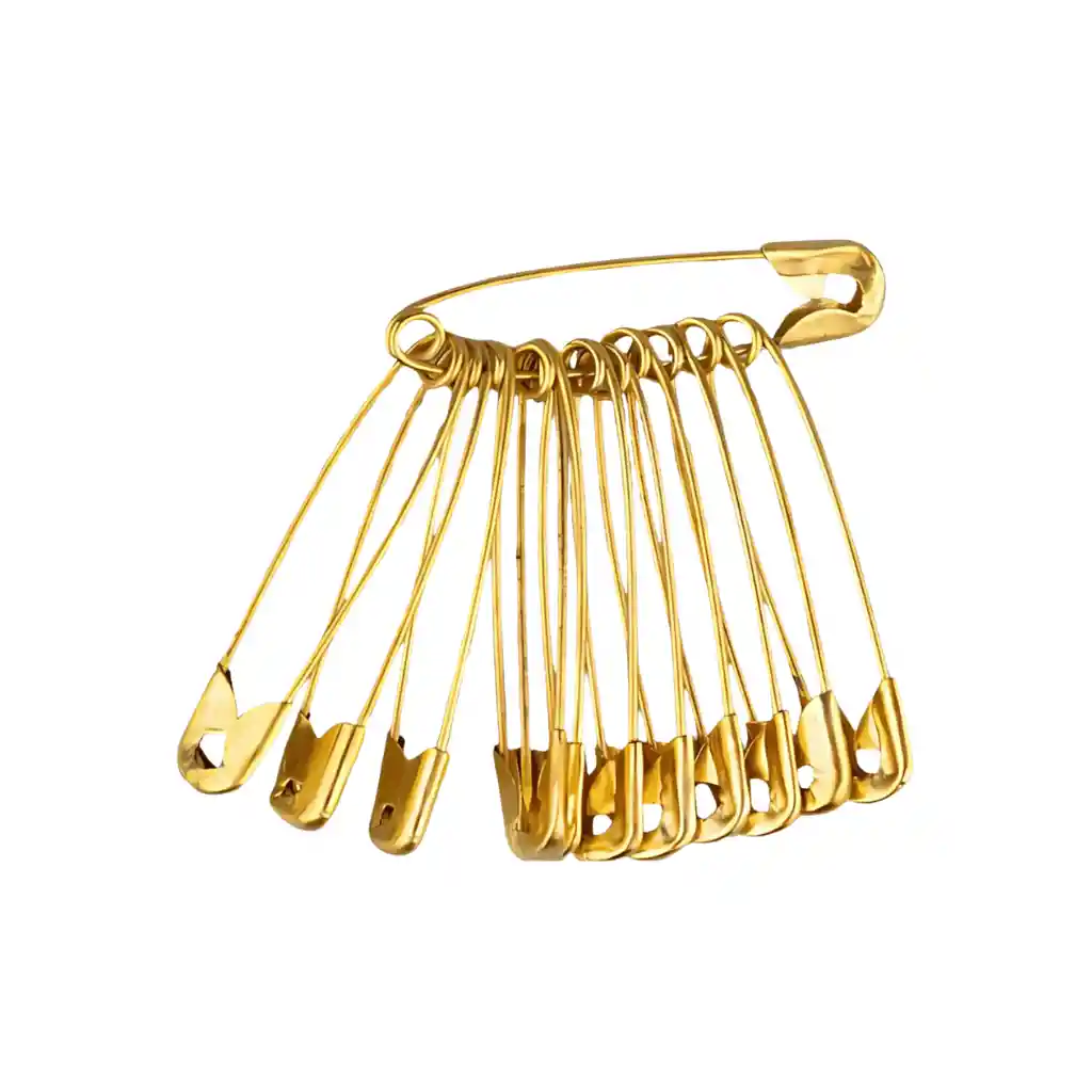 Ganchos nodriza dorados tipo alfiler con cierre seguro. Evitan aperturas accidentales y son ideales para costura, manualidades u oficina