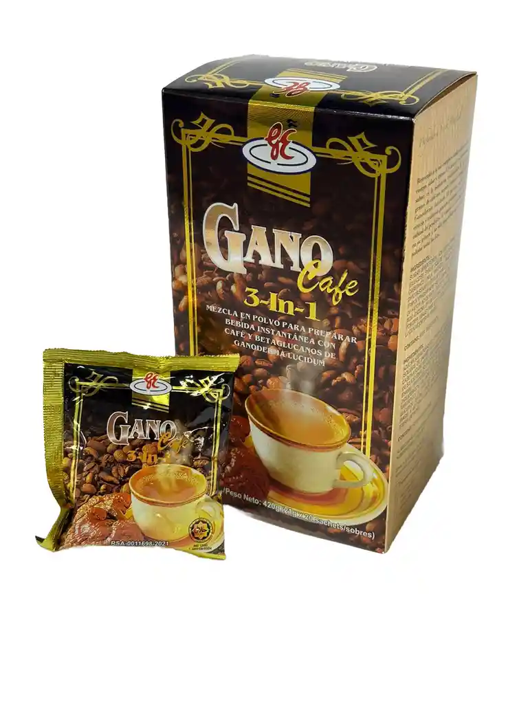 GanoCafe 3-EN-1 en caja con 20 sobres de café tipo cappuccino con Ganoderma Lucidum. Descubre la perfección instantánea con nuestro Gano Café 3-EN-1 con Ganoderma lucidum. Esta mezcla única combina la riqueza del café gourmet con la comodidad de la crema y el azúcar, todo en una sola taza. Pero eso no es todo: hemos elevado aún más esta experiencia añadiendo los beneficios revitalizantes del Ganoderma lucidum. Disfruta de la indulgencia sin esfuerzo mientras nutres tu cuerpo con cada sorbo. Gano Café 3-EN-1 es la elección ideal para quienes buscan un café delicioso y lleno de beneficios para el bienestar, todo en un instante.