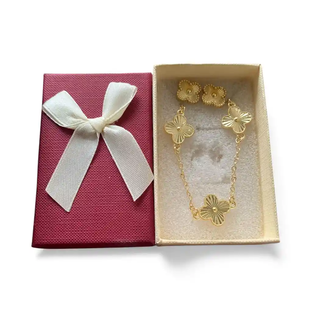 Gargantilla Con Aretes Dorada De Rodio Con Dije Tipo Trebol De Cuatro Petalos